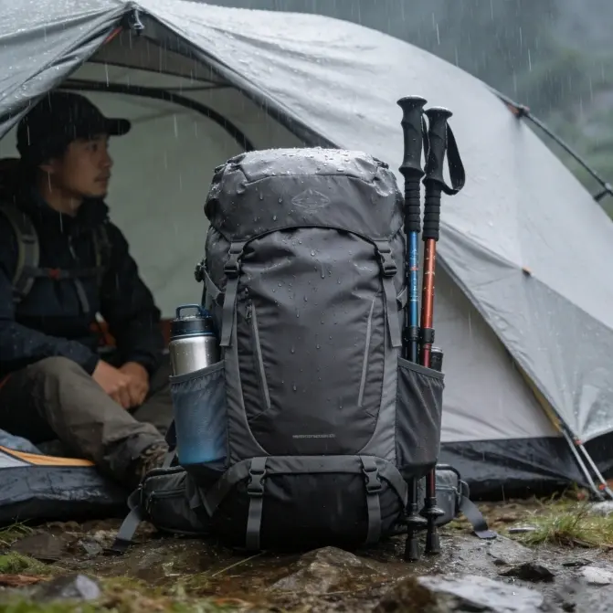 Equipped with an ergonomic suspension system, this hiking backpack is made of tear-resistant water-resistant nylon with a rain cover. It has multiple gear attachment points and a large compartment, perfect for day hikes, camping and mountain expeditions.