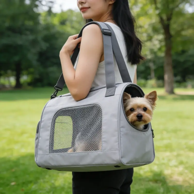 Crafted from lightweight Oxford cloth with breathable mesh, this pet carrier features a safety buckle and anti-escape zipper for small to medium pets. Foldable and with detachable straps, it’s ideal for car rides, vet visits and walks, ensuring safety and comfort for your furry friends.